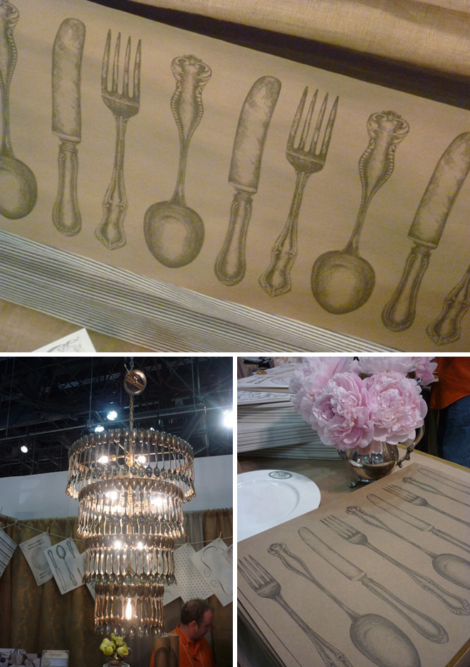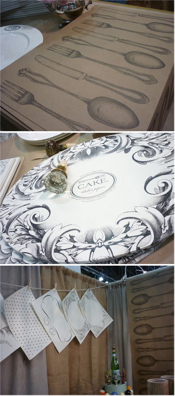 Today’s beautiful find from the National Stationery Show in New York was Cake Vintage. I had seen their paper place mat range before, but was stopped in my tracks by the stunning paper table runner and vintage spoon chandelier. Vintage theme occasion anyone?