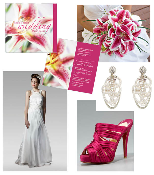 inspiration boards, weddingsI don’t think the lily with it’s vibrant pinks and white will ever go out of style for a wedding! Today’s inspiration comes from the Lily Blush Wedding Invitation.