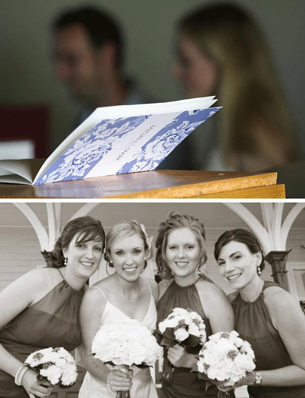 Above: The couple chose the Alannah Rose Rose Tapestry invitation suite in a custom blue. “The beautiful stationery from Alannah Rose was a big hit! We were so excited when we received our invitations – we were absolutely delighted with them. The matching invitations, service covers, menu covers and place cards really helped to create the theme and mood for the day and we received so many lovely comments on them. A lot of people commented on how they thought they were a lovely mix of classic, yet modern style” says Megan