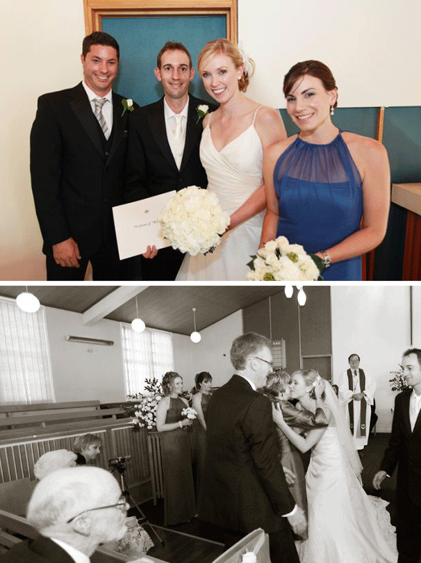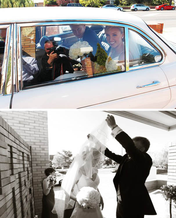 The wedding was filmed by Megan’s uncle “My uncle Brett did the videography of the day for us. We were not going to worry about a video, when my uncle volunteered to do it for us.” says Megan “He did an amazing job and we are so glad to have the video now as a keepsake. It was great fun to be able to see the parts you weren’t there for – e.g. the groomsmen getting ready and then waiting at the church, the music at the church before we arrived etc. It will also be hilarious to watch in 20 years time I’m sure! “