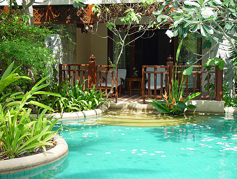 Above: The pool terrace room entrance from the pool- swim in and out of the pool directly from your room