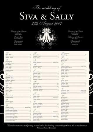 alannah rose new designs, weddingsWe’ve been doing seating charts for a while now, but just have not had the time to add them to the site, so I thought I’d post a couple of the recent ones we’ve done. They can be done to match any of the wedding invitation designs in store to compliment your theme. An A1 size poster on high quality poster stock is $180 plus gst. Please contact me if you are interested in ordering one of these. We are hoping to start adding them to the site in the coming weeks.