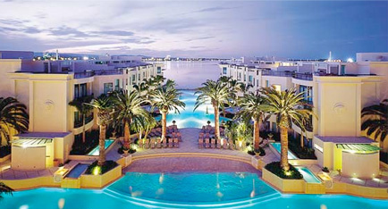 Above: The stunning Palazzo Versace Hotel on the Gold Coast – views over the pool and onto the marina.