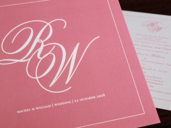 Above: Pink Embellish wedding invitation as featured in Real Weddings Style magazine – “Think Pink” “Sophisticated” article