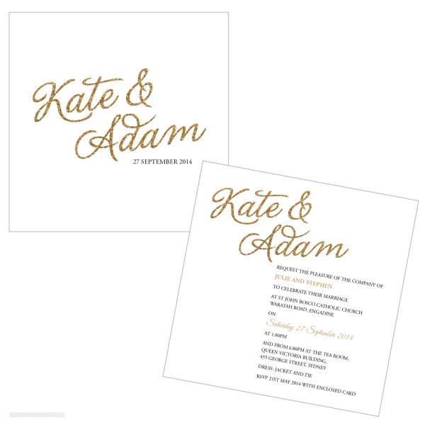 Add a little glitz to your day with this smart glitter print design. The graphic is a photo of glitter printed on the card (not real glitter or foil), so for extra sparkle select the shimmer stock, but they look just as lovely on the others too! Square card invitation printed to both sides on a Satin Deluxe card stock. Shimmer or Textured card stock is available with additional charge. Envelopes are included (smooth white envelopes are provided for Textured card stock). Guest names can be printed on invitations and/or envelopes, please select the personalisation option if you require this. Other colour options are available please see our colour chart for details. Flat size 140 x 140mm.