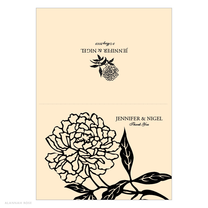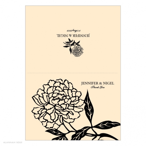 Thank You cards are folding note card style and come with white envelopes. Printed on a high quality Satin Deluxe card stock. Shimmer or Textured card stock is available at an additional charge. Thank You cards are blank inside for you to write your own personal message. Alternatively you can select to have a generic message printed inside for an additional charge. Folded size 140 x 105mm.