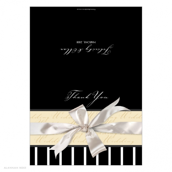 Thank You cards are folding note card style and come with white envelopes. Printed on a high quality Satin Deluxe card stock. Shimmer or Textured card stock is available at an additional charge. Thank You cards are blank inside for you to write your own personal message. Alternatively you can select to have a generic message printed inside for an additional charge. Folded size 140 x 105mm.