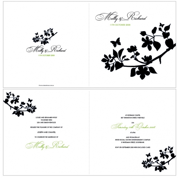 These wedding invitations are folding style and printed on a high quality 350gsm Satin Deluxe card stock.