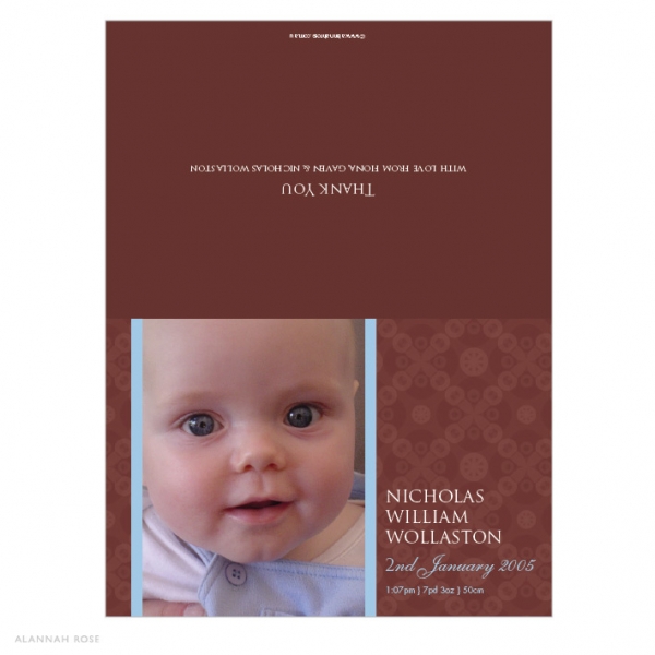 Gorgeous baby thank you cards for your new baby. Announce the arrival of your little one in style! These cards are folding style, printed on a 350gsm Satin Deluxe card stock and come with white envelopes. The inside is left blank for you to write your personal message. A generic message can be printed to the inside of the card for an additional charge. Please select the option below if you would like this.