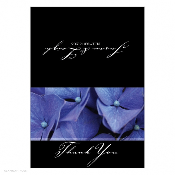 Thank You cards are folding note card style and come with white envelopes. Printed on a high quality Satin Deluxe card stock. Shimmer or Textured card stock is available at an additional charge. Thank You cards are blank inside for you to write your own personal message. Alternatively you can select to have a generic message printed inside for an additional charge. Folded size 140 x 105mm.