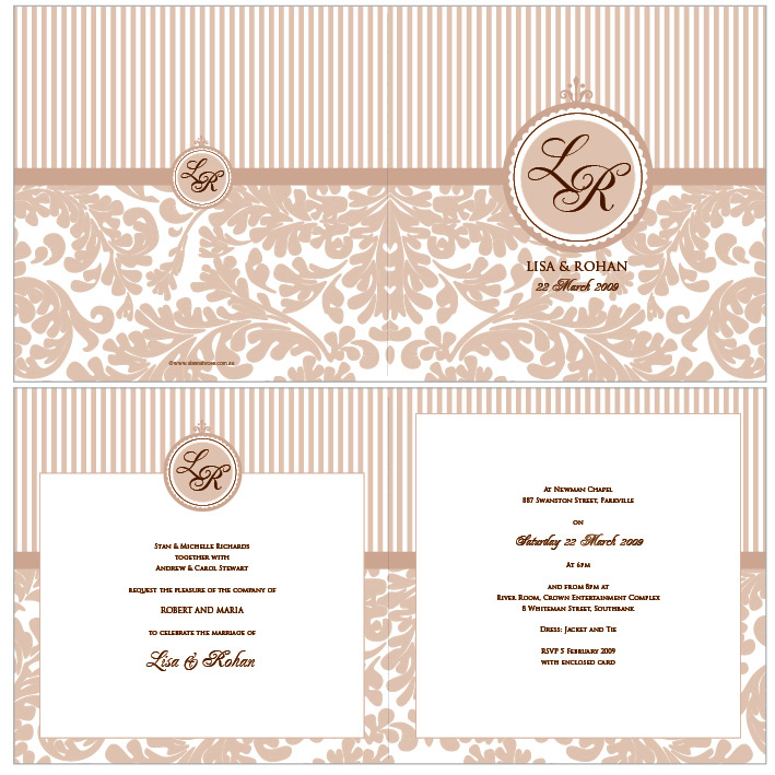 These wedding invitations are folding style and printed on a high quality 350gsm Satin Deluxe card stock.