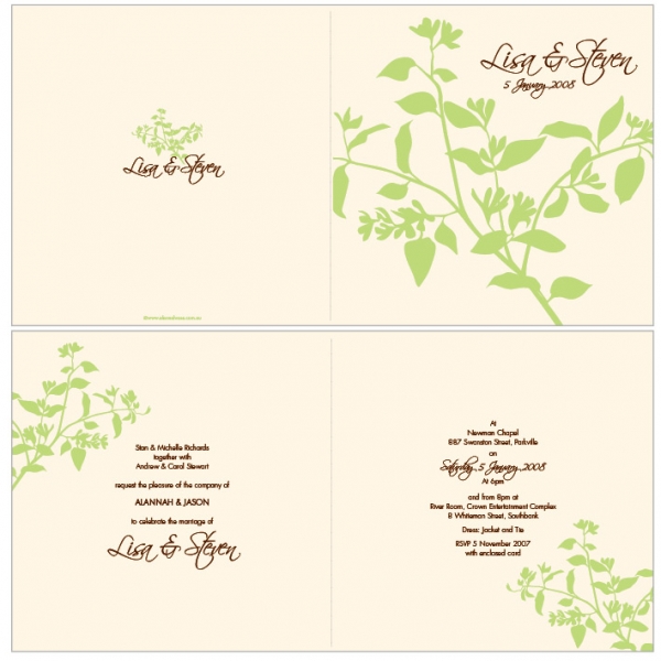 These wedding invitations are folding style and printed on a high quality 350gsm Satin Deluxe card stock.