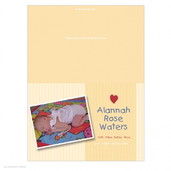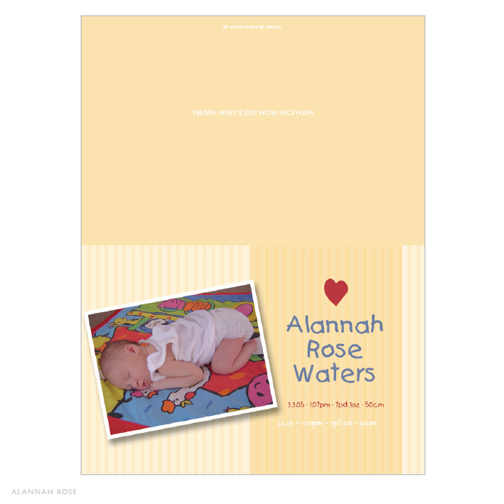 Gorgeous baby thank you cards for your new baby. Announce the arrival of your little one in style! These cards are folding style, printed on a 350gsm Satin Deluxe card stock and come with white envelopes. The inside is left blank for you to write your personal message. A generic message can be printed to the inside of the card for an additional charge. Please select the option below if you would like this.