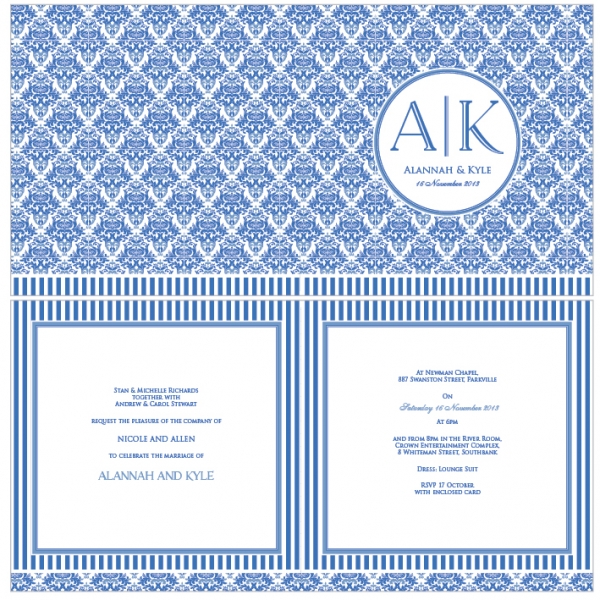 These wedding invitations are folding style and printed on a high quality 350gsm Satin Deluxe card stock.