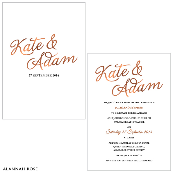 These wedding invitations are a sweet A6 size. They are a flat card printed to both sides and come with white envelopes. Printed on a high quality Satin Deluxe card stock. Shimmer or Textured card stock is available with additional charge. Envelopes are included (smooth white envelopes are provided for Textured card stock). Guest names can be printed on invitations and/or envelopes, please select the personalisation option if you require this. Other text colour options are available please see our colour chart for details. Note that the metallic colour of the bride and groom names cannot be changed. Flat size 148.5 x 105mm.