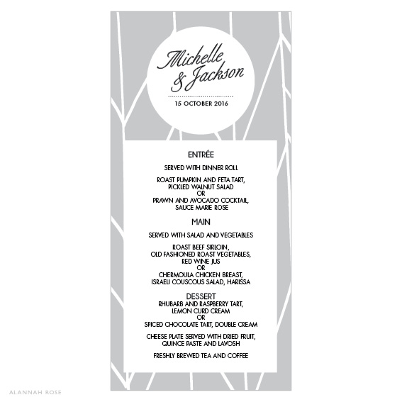 Stylish menu cards to tie your wedding theme together. Menu cards are a single DL size card printed to one side only on a 350gsm Satin Deluxe card stock. Shimmer or Textured card stock is available at an additional charge. Menu cards can also have your guest names personalised on them if you would like them to double as place cards. Please select the personalisation option if you require this. Flat size 210x100mm