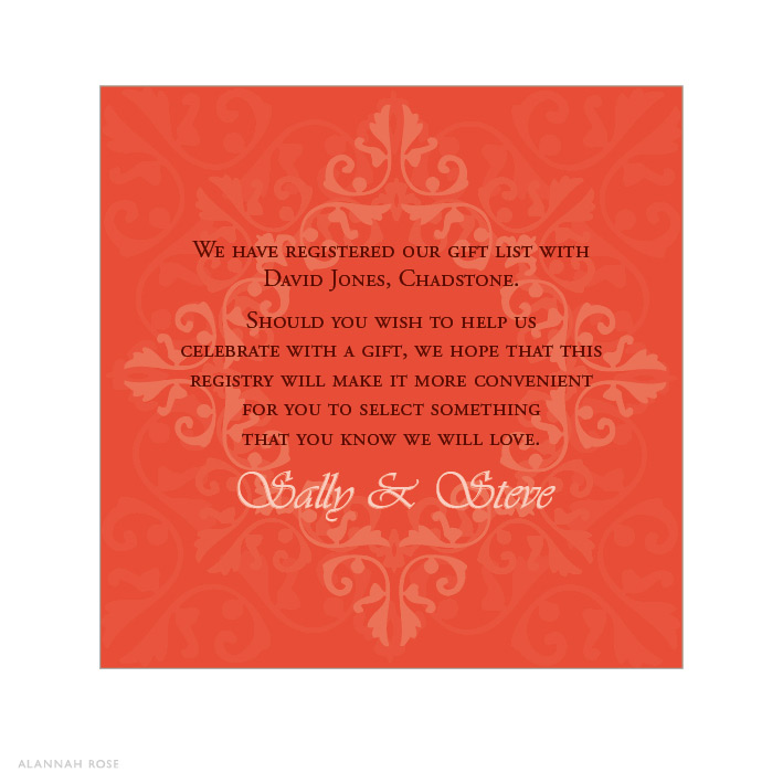 Orange Ornate Gift Registry Card
