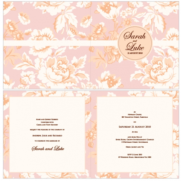 These wedding invitations are folding style and printed on a high quality 350gsm Satin Deluxe card stock.