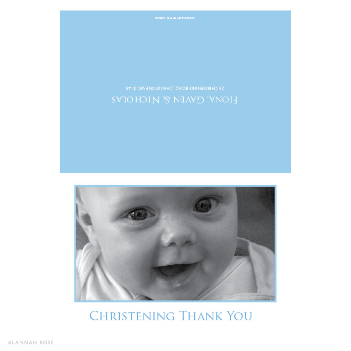 Photo thank you cards are folding note card style, printed on a high quality 350gsm Satin Deluxe card stock and come with white envelopes. They are blank inside for you to write your own personal message. Alternatively you can select to have a generic message printed inside for an additional charge. Thank You Cards can also be printed on Shimmer or Textured stock as an alternative to the Satin Deluxe for an additional charge. Folded size 148.5 x 105mm. *Copyright release/permission required if submitting professional photos