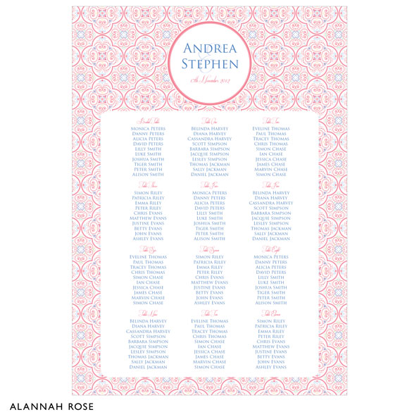 This guest seating chart is the perfect way to help your guests find their table. Choose from our Glossy Poster Stock for insertion into a frame of your choice or order our Self-adhesive Stock, which you can adhere to a solid backing board, such foam board or corflute.