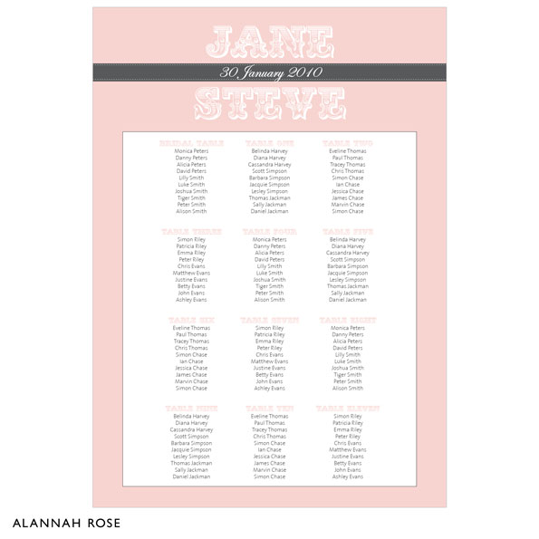 This guest seating chart is the perfect way to help your guests find their table. Choose from our Glossy Poster Stock for insertion into a frame of your choice or order our Self-adhesive Stock, which you can adhere to a solid backing board, such foam board or corflute.