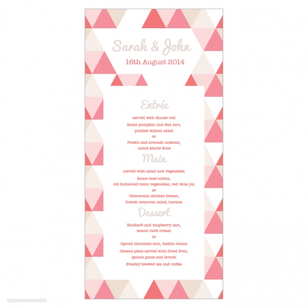 Stylish menu cards to tie your wedding theme together. Menu cards are a single DL size card printed to one side only on a 350gsm Satin Deluxe card stock. Shimmer or Textured card stock is available at an additional charge. Menu cards can also have your guest names personalised on them if you would like them to double as place cards. Please select the personalisation option if you require this. Flat size 210x100mm