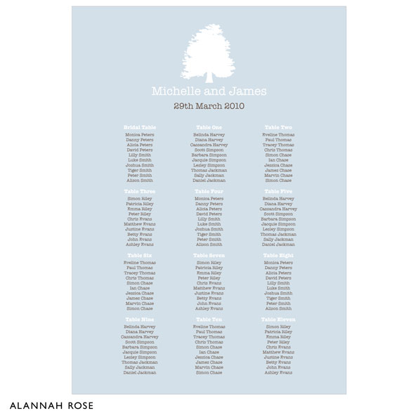 This guest seating chart is the perfect way to help your guests find their table. Choose from our Glossy Poster Stock for insertion into a frame of your choice or order our Self-adhesive Stock, which you can adhere to a solid backing board, such foam board or corflute.